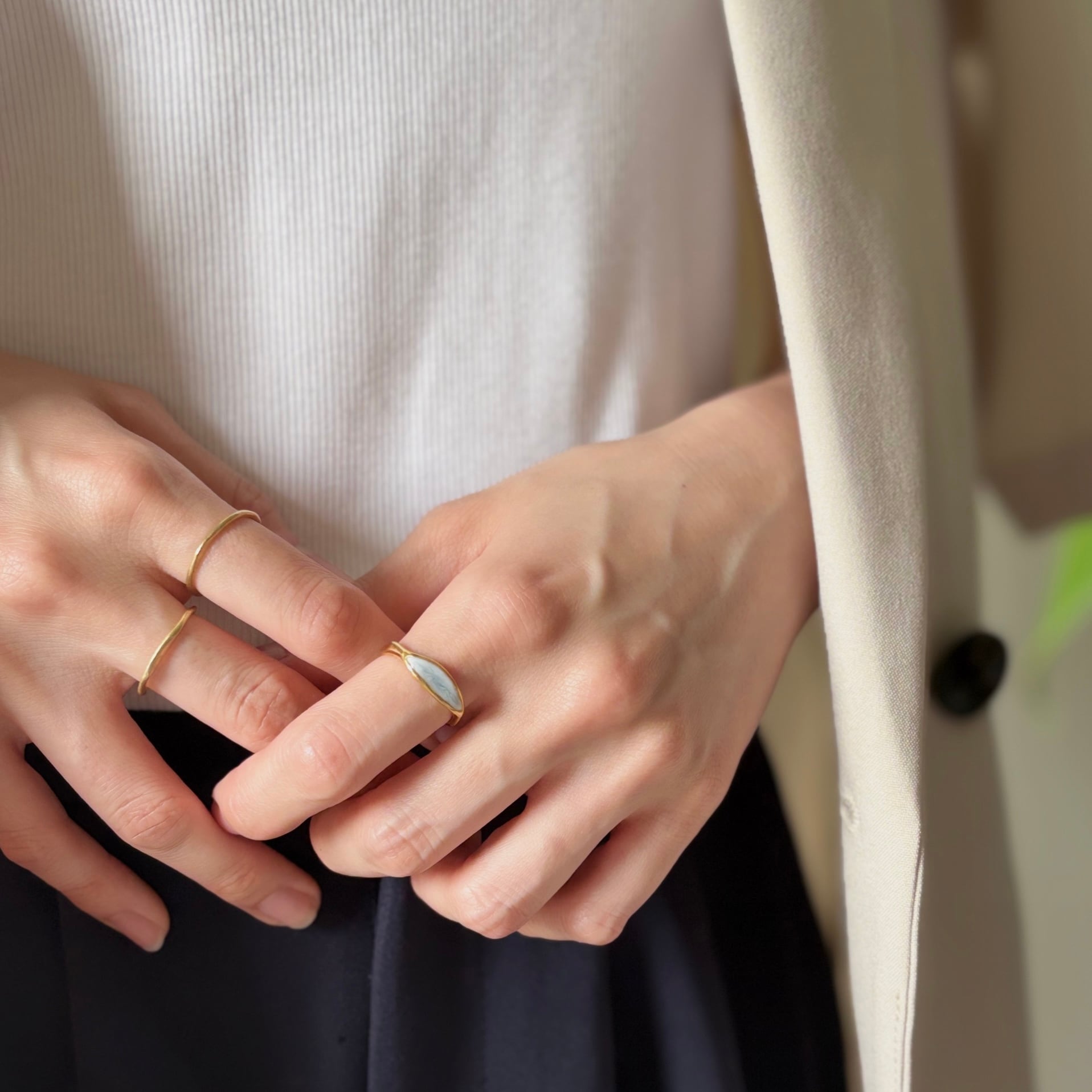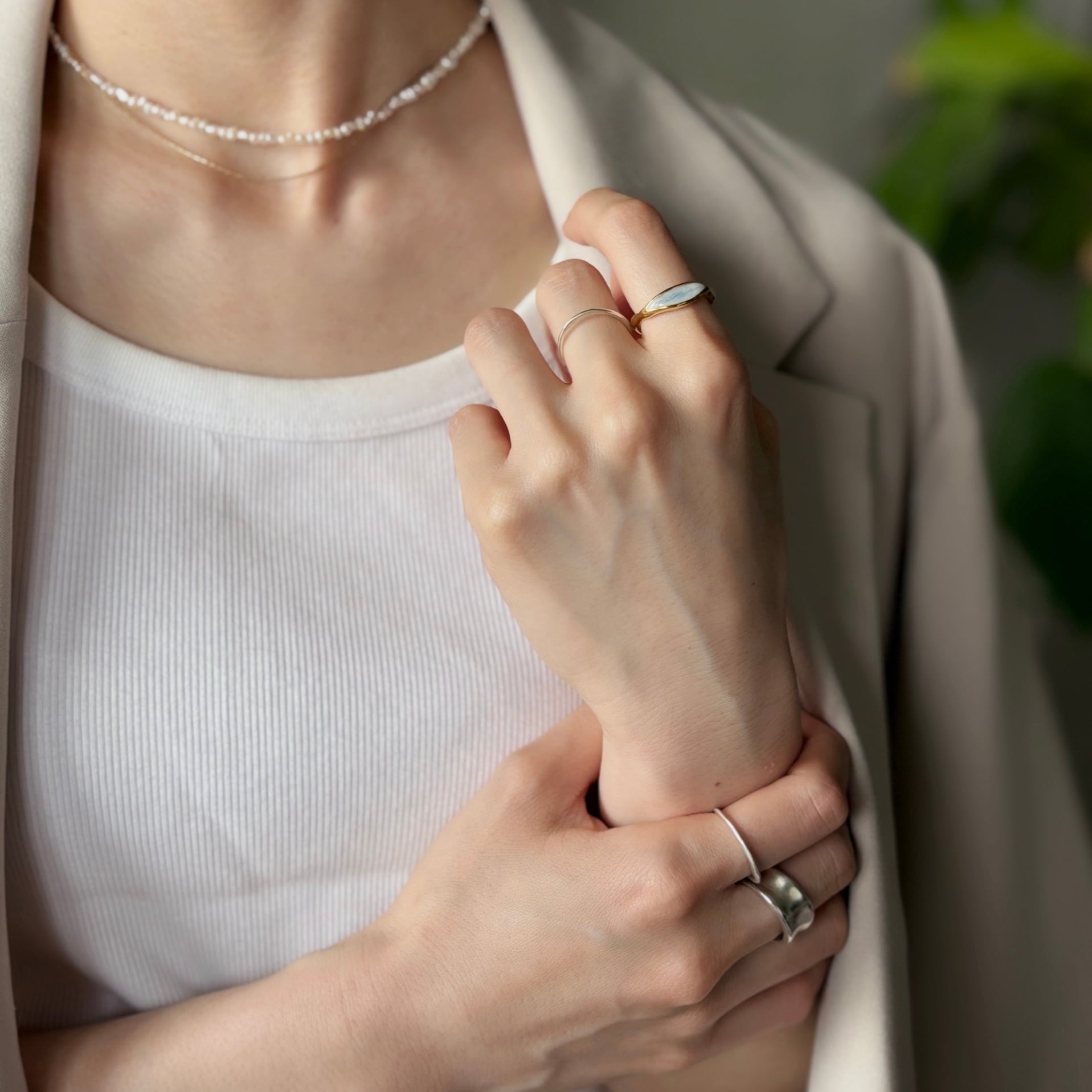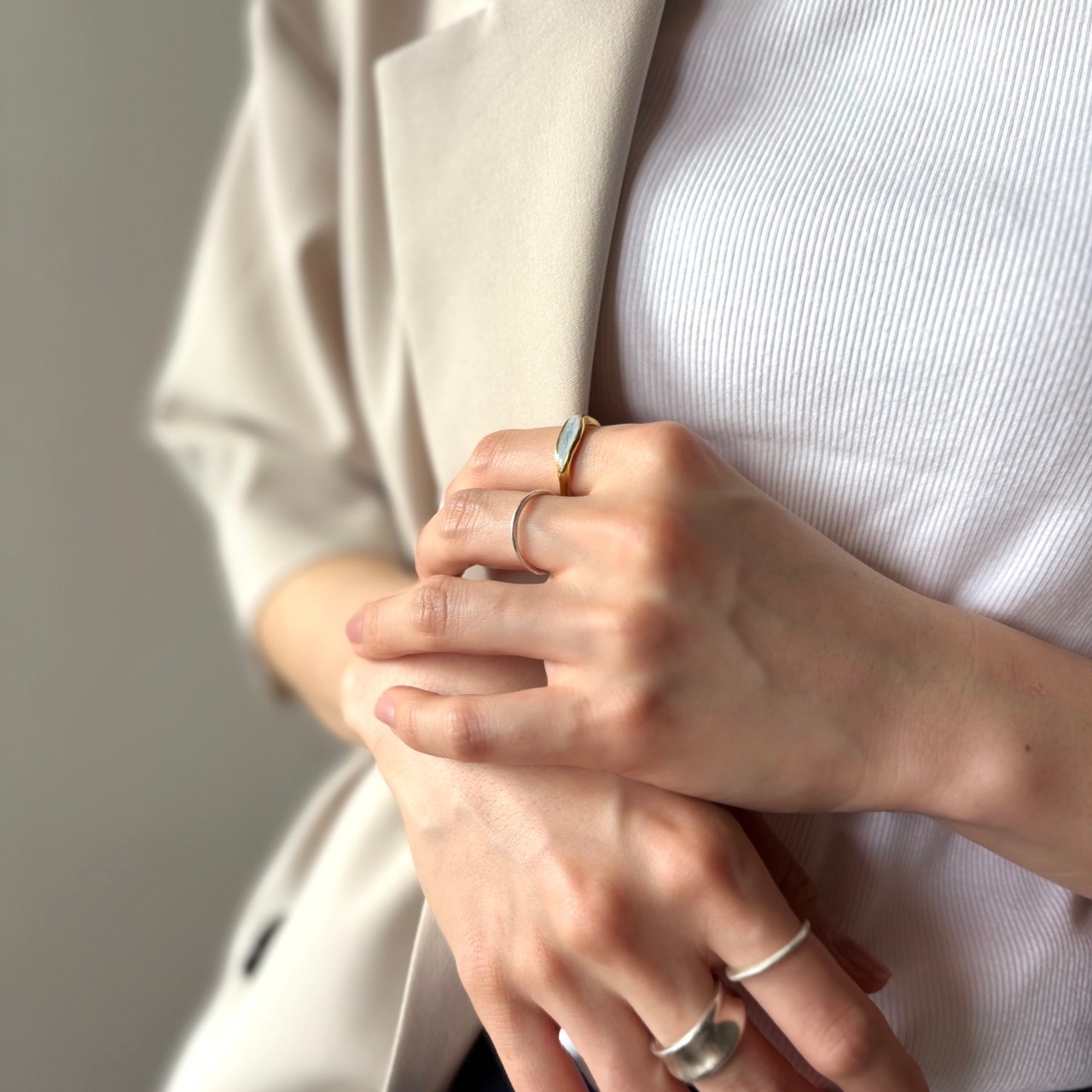 他のリングと合わせて使いやすい「デザイン・サイズ感」に仕上げています。ボリュームたっぷりのリングとの組み合わせは特におすすめです。