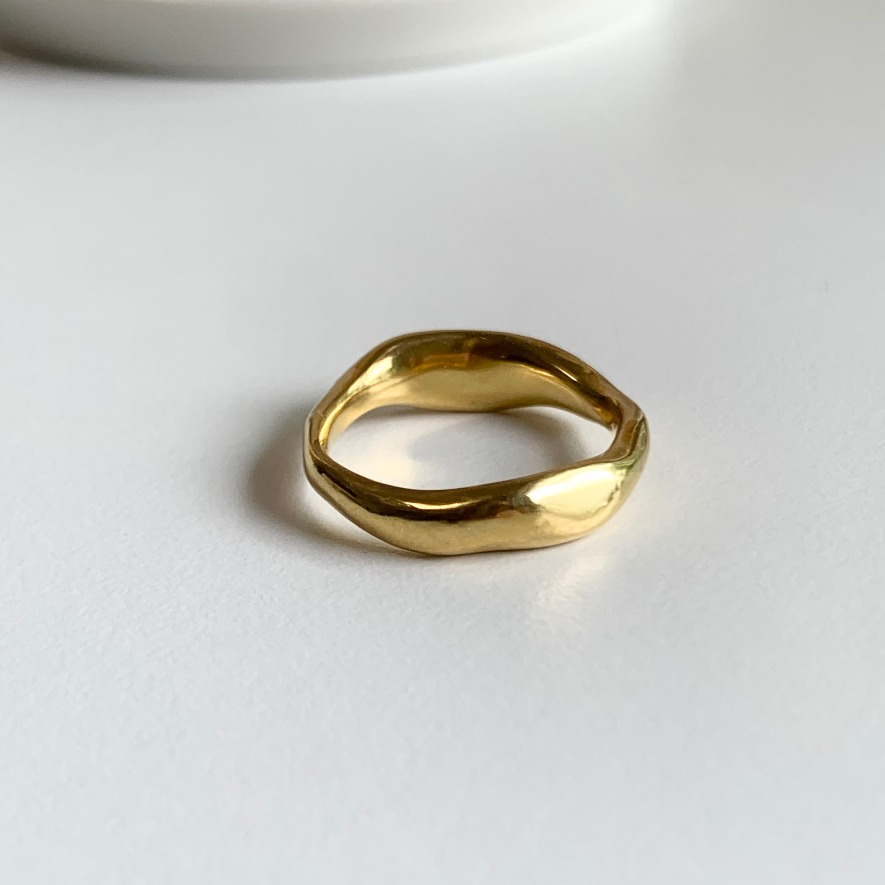 他のリングをより一層引き立て、手元のアクセントになる、1本あると心強いリングです。