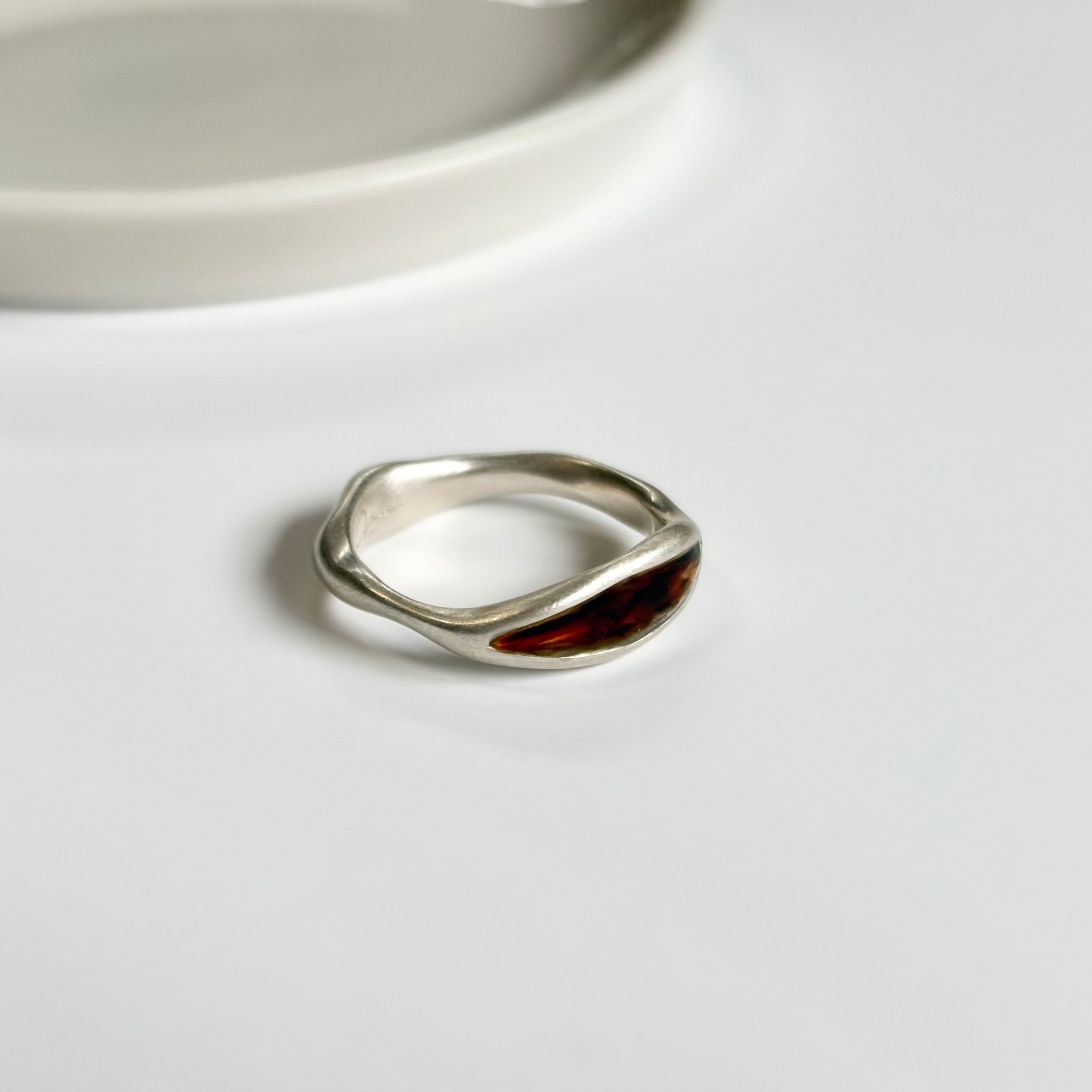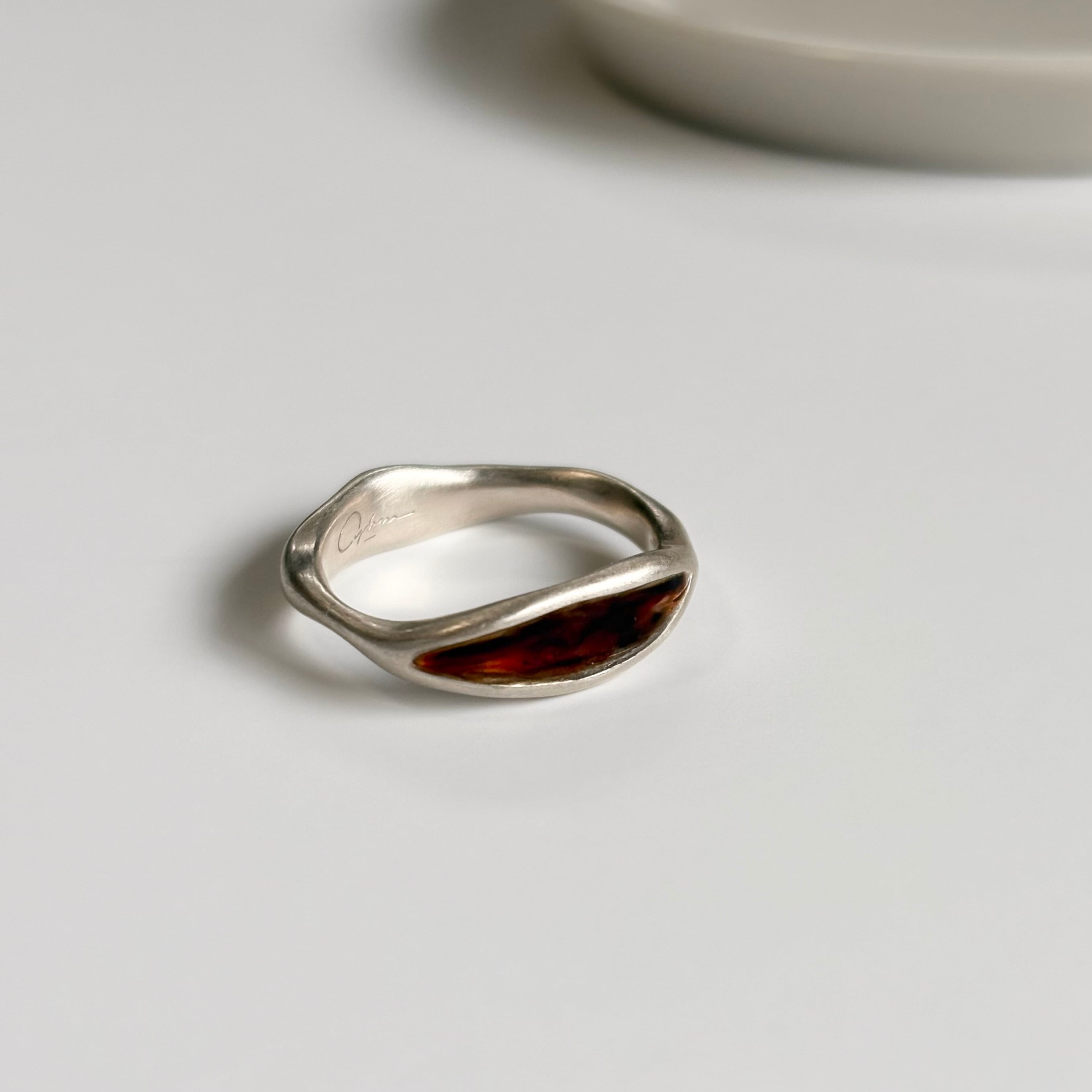 組み合わせやすい赤茶色カラーで自分だけのオリジナルの組み合わせを楽しんだり、手元を見るたびに少しワクワクした気持ちになれたり、毎日のご機嫌をちょっとだけ上げてくれるリングになれたらいいなという想いを込めました。