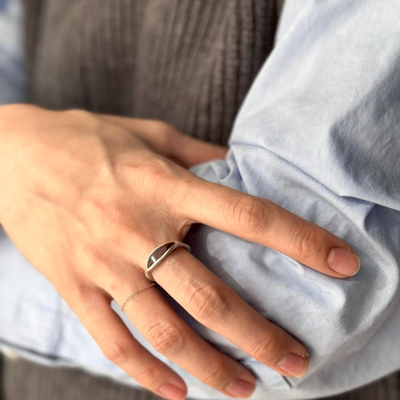 シルバーリングは硬派なアクセサリーのイメージもありますが、silver925の少し白みがかったシルバーカラーは肌馴染みがよく、柔らかい印象でご着用いただけます。