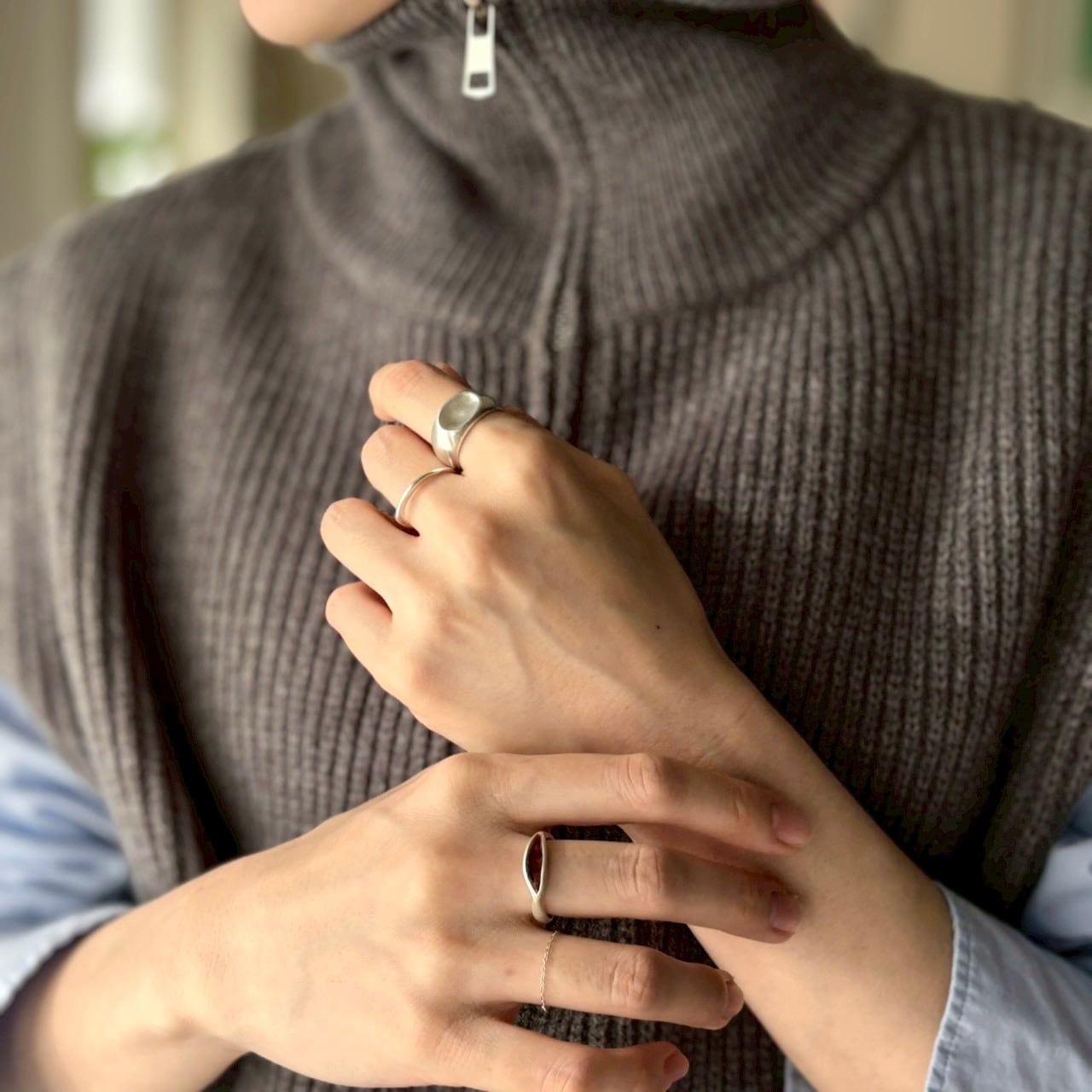 ensemble ringは、他のリングと合わせて使いやすい「デザイン・サイズ感」に仕上げています。特に、ボリュームたっぷりのリングとの組み合わせがおすすめです。