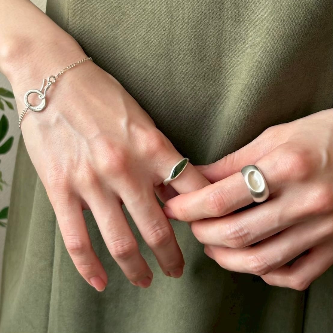 シルバーリングは硬派なアクセサリーのイメージもありますが、silver925の少し白みがかったシルバーカラーは肌馴染みがよく、柔らかい印象でご着用いただけます。