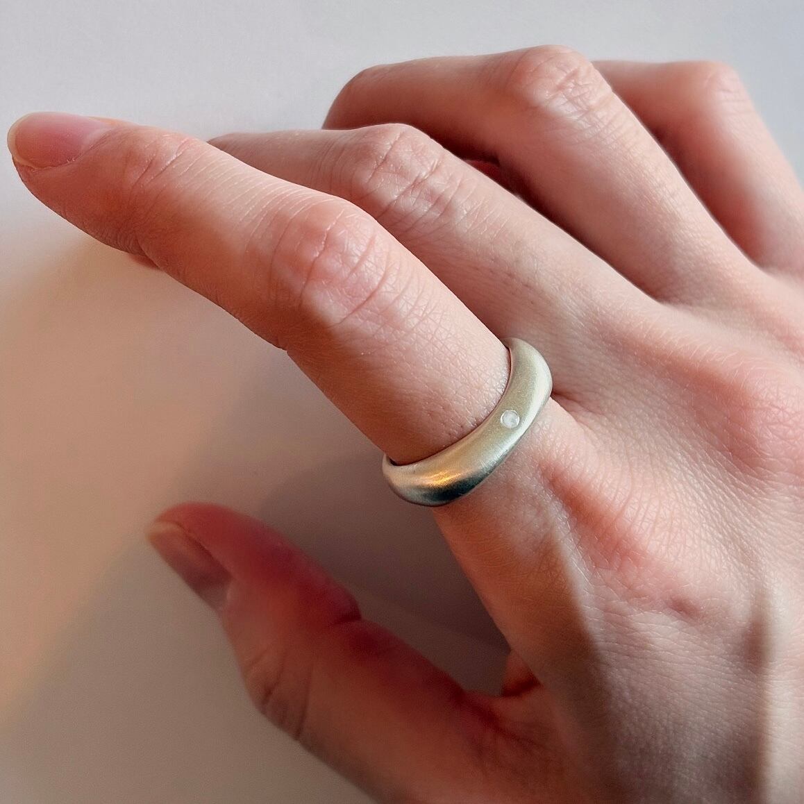 シルバーリングは硬派なアクセサリーのイメージもありますが、silver925の少し白みがかったシルバーカラーは肌馴染みがよく、柔らかい印象でご着用いただけます。