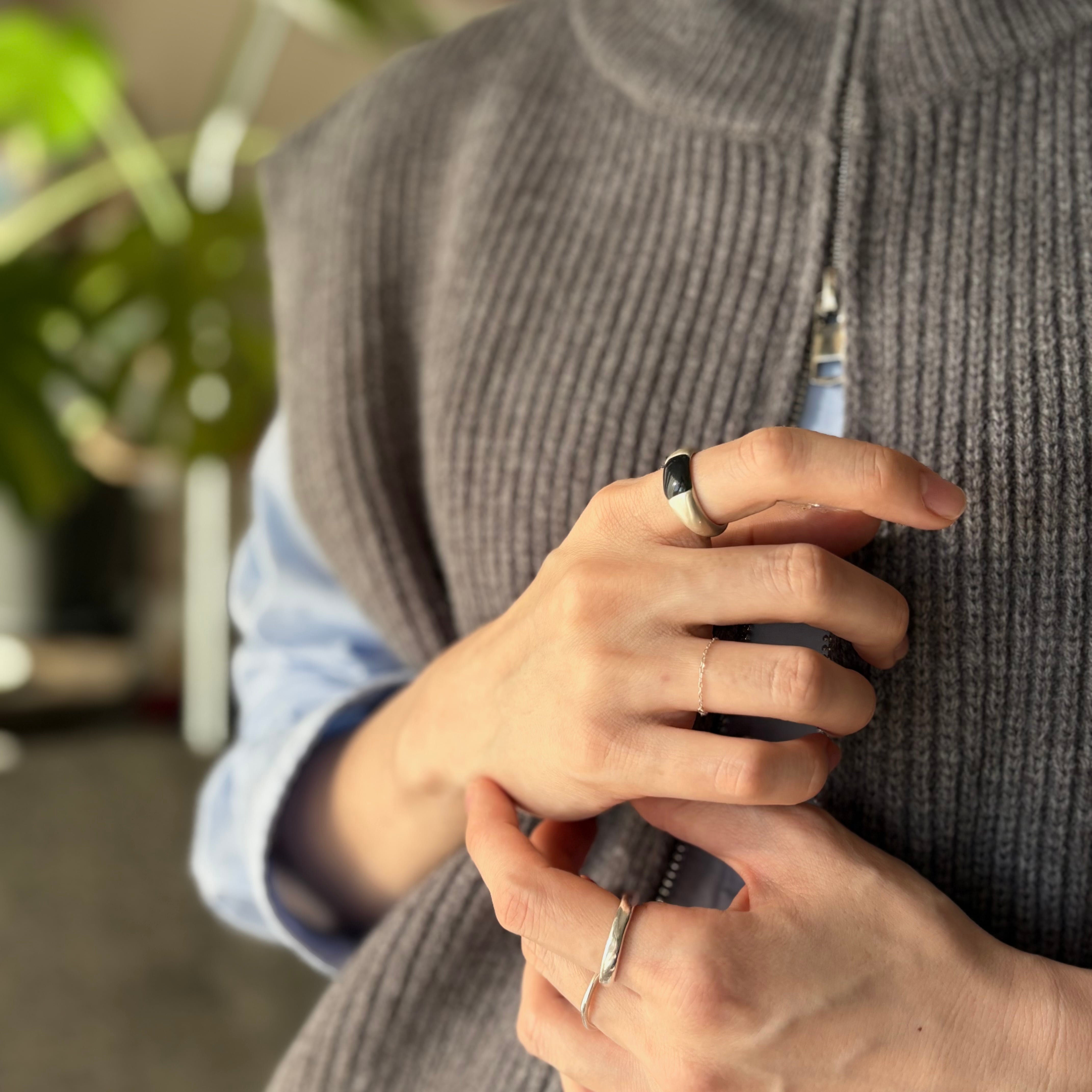 シルバーリングは硬派なアクセサリーのイメージもありますが、silver925の少し白みがかったシルバーカラーは肌馴染みがよく、柔らかい印象でご着用いただけます。